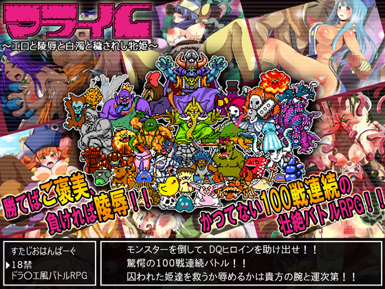 An epic nonstop 100 continuous battles are crammed into this tribute RPG with 11 heroines from the DQ series! 20 base CG images